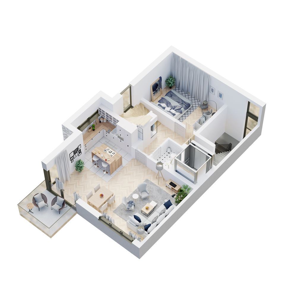 Im 1.Obergeschoss findet eine schöne 2-Zimmer Wohnung auf geräumigen 67,32 qm ihren Platz. Ein Wohnzimmer, Tageslichtbad sowie ein geräumiges Wohnzimmer mit offenem Küchenkonzept und Balkon machen diese Wohnung zur perfekten Wohnung für kinderlose Paare oder Singles.