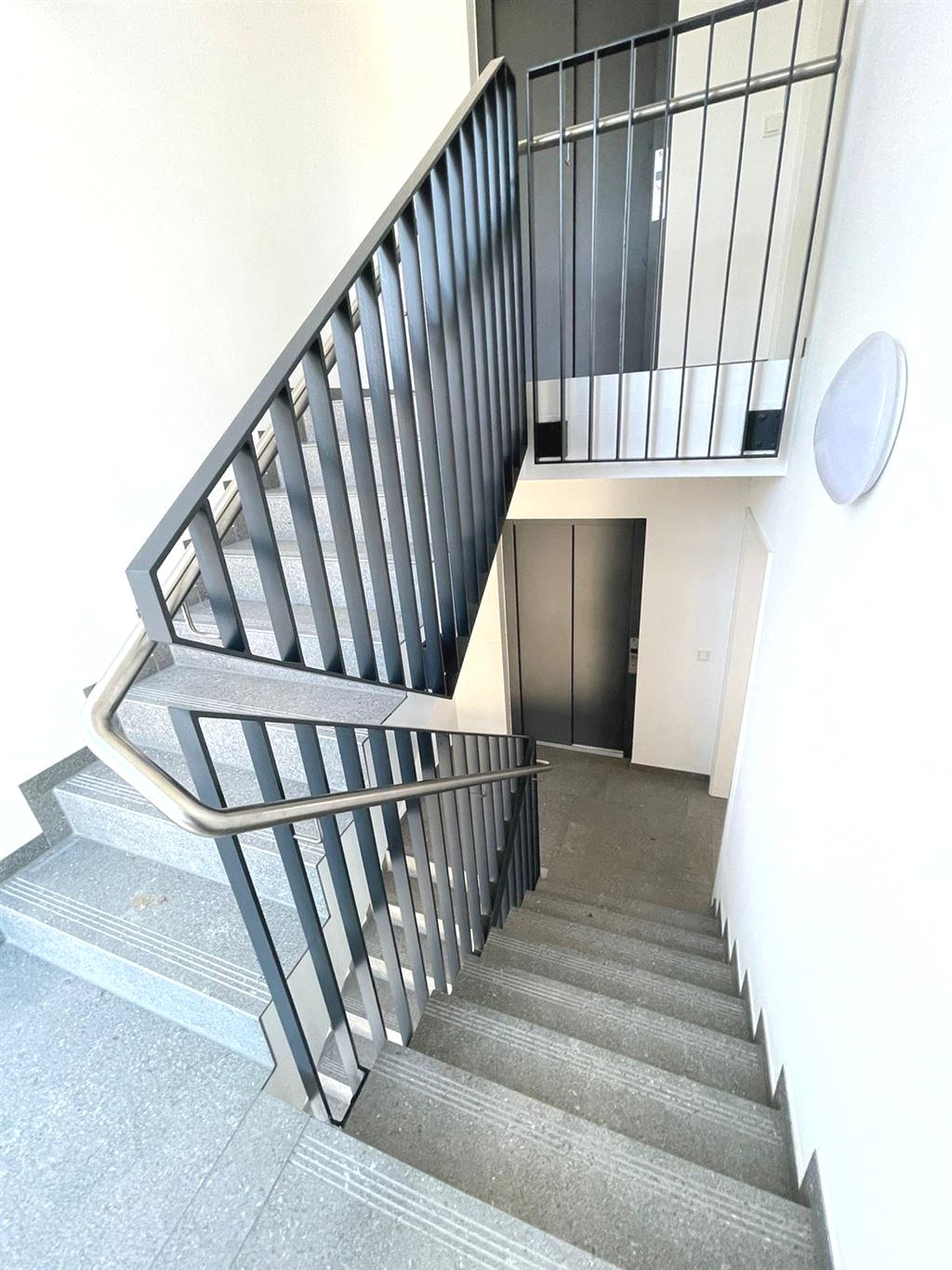 Das Gebäude wurde hochwertig ausgestattet, so zum Beispiel mit Echtholzparkettboden, Großformatfließen, sowie Einbauküchen, ebenso verfügt es über einen Personenaufzug, mit dem alle Etagen vom Keller bis ins Dachgeschoss bequem zu erreichen sind.